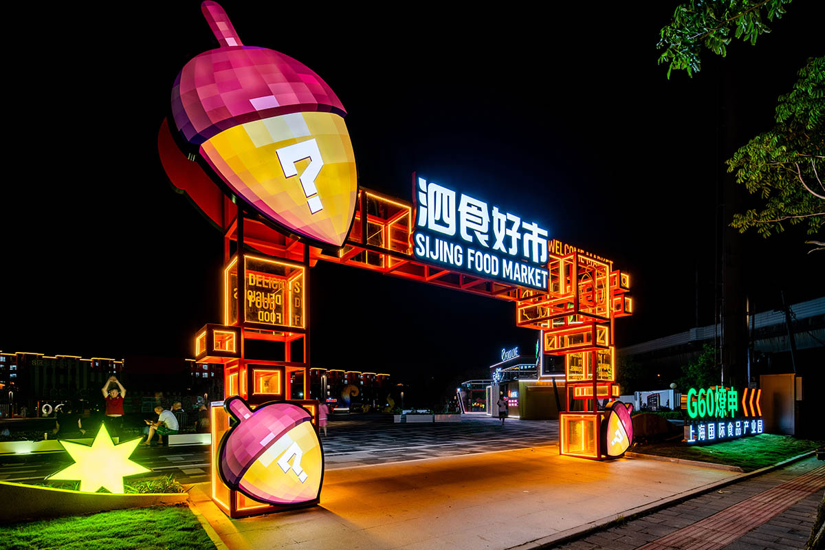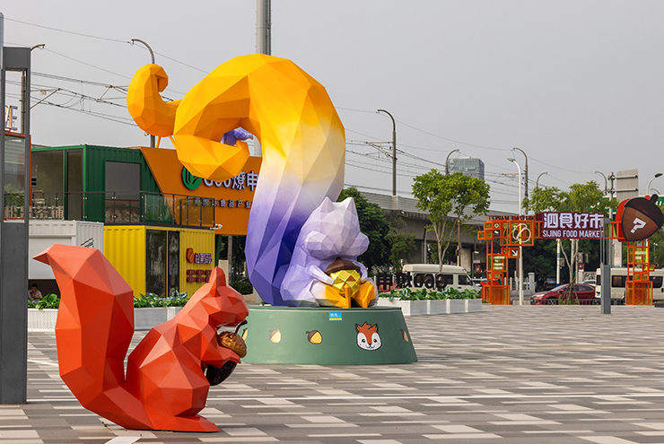 我們根據年輕人對強體驗場景的需求,做出視覺交互沉浸式的體驗場景來激發(fā)其探索欲望,做了吸引人的ip松小泗,來講述泗食好市的故事。 我們采用松鼠IP化做主形象是因為松鼠在冬天會變成一個囤貨高手,僅可以呼應我們國際美食產業(yè)園的產業(yè)特色,同時其具有的可愛,靈活,毛絨絨的特點也深受年輕用戶的喜愛。